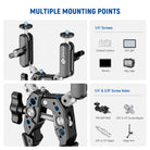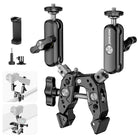 - Due bracci magici con doppia testa a sfera - I doppi bracci magici di questo supporto a morsetto per fotocamera consentono di montare due dispositivi contemporaneamente. La struttura della testa a sfera regolabile consente una rotazione di 360° per un posizionamento libero del dispositivo e le viti di montaggio da 1/4" sono adatte a vari dispositivi. Utilizza le manopole di bloccaggio per regolare e fissare facilmente i bracci magici.
