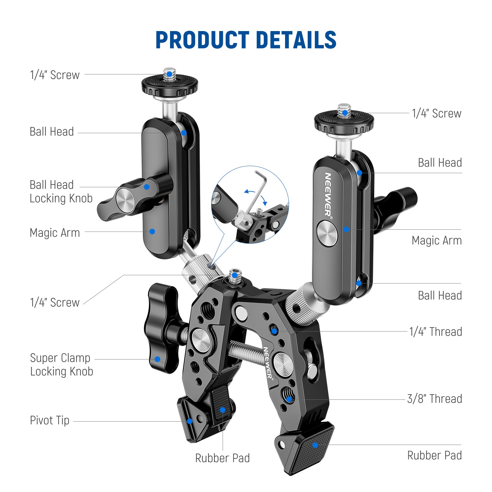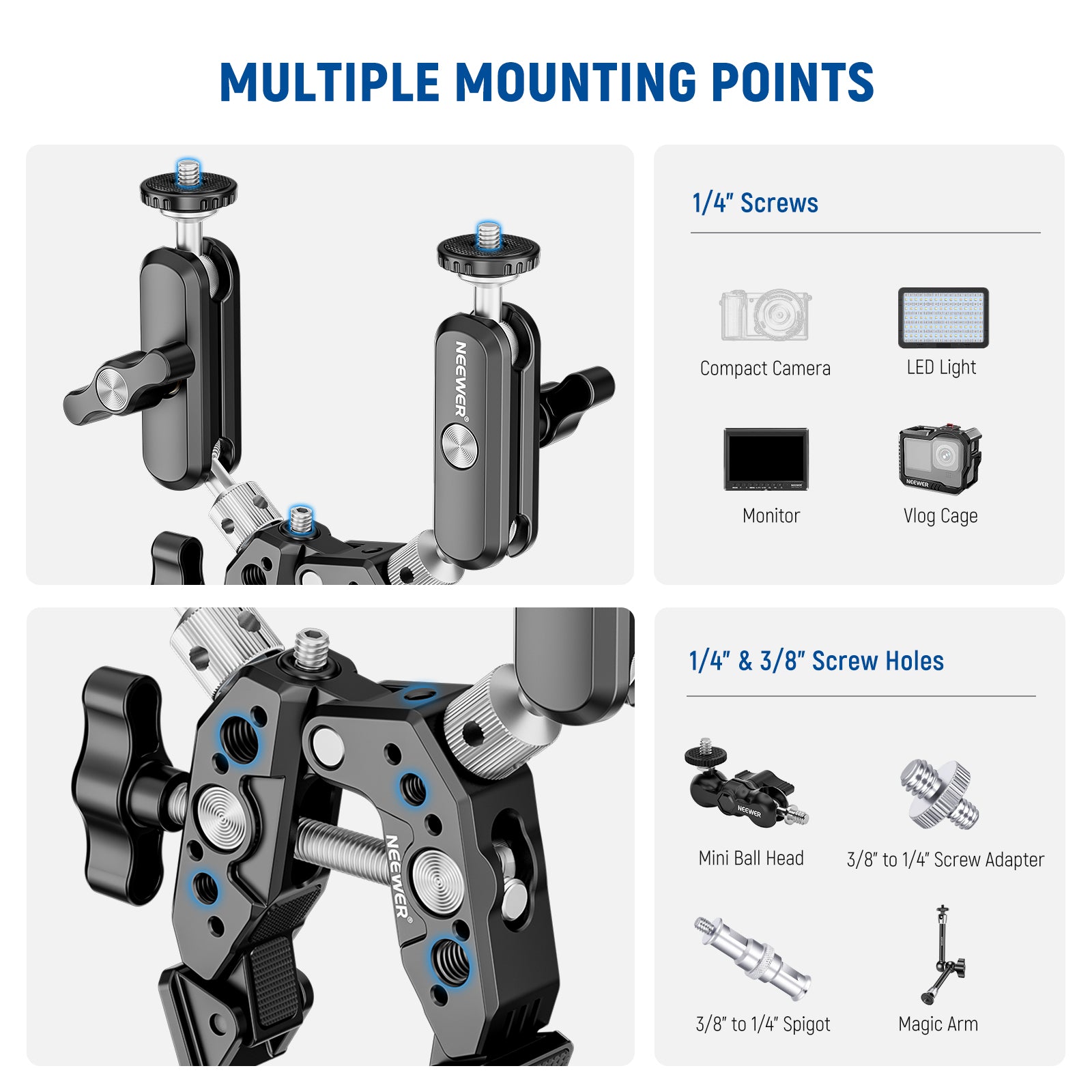 NEEWER ST82 Morsetto Super Heavy Duty con due bracci magici a doppia testa sferica a 360°