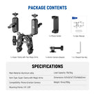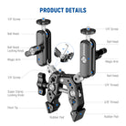 - Robusta struttura in metallo : la lega di alluminio anodizzato nero con lavorazione CNC di precisione garantisce una struttura robusta per ambienti esterni incerti e difficili. I cuscinetti in gomma antiscivolo su questo robusto morsetto in metallo e sulla piastra di montaggio del dispositivo aumentano la stabilità e proteggono l'apparecchiatura dai graffi.