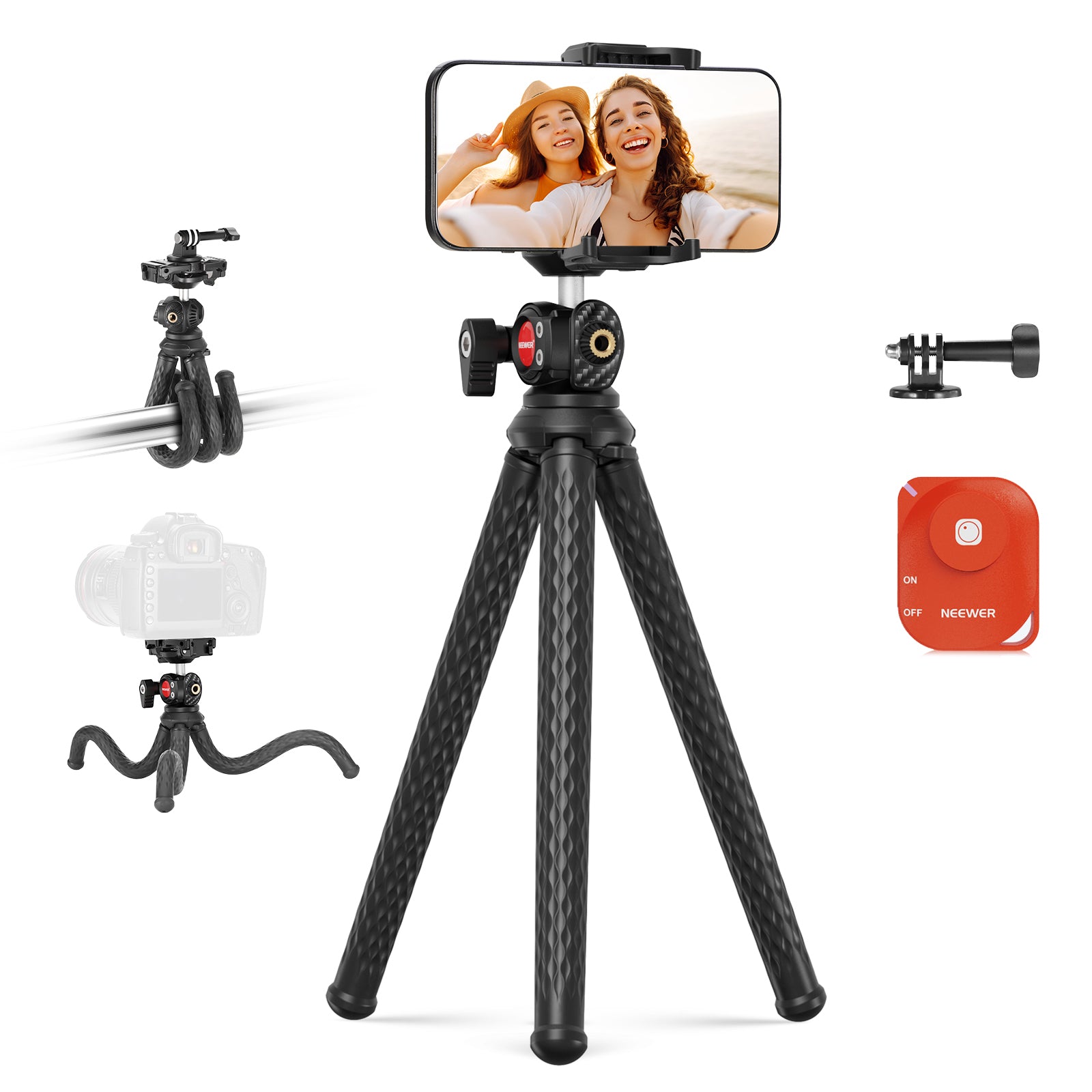 - Treppiede flessibile per telefono con telecomando - A differenza dei treppiedi tradizionali, questo piccolo supporto a treppiede a forma di polpo si avvolge in modo flessibile attorno a pali, rami o manubri e monta in modo sicuro una fotocamera DSLR, una action camera, uno smartphone o un tablet fino a 4,4 libbre (2 kg). Include anche un pulsante di scatto Bluetooth per l'attivazione a distanza (≤33 piedi/10 m, senza ostacoli)