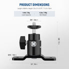 - Testa a sfera staccabile : la testa a sfera con rotazione di 360° e inclinazione di 90° offre qualsiasi angolazione necessaria. Staccalo rimuovendo due viti e utilizza il perno da 5/8" nascosto all'interno
