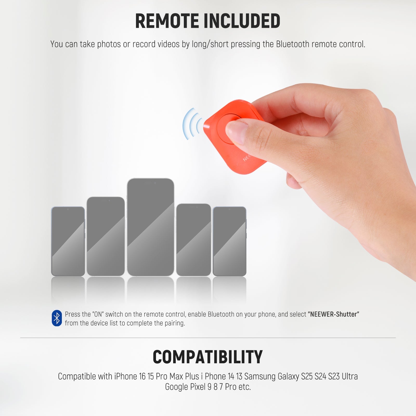 Lightweight & Portable- Just 13.5oz/384g and folding down to 12.6"/32cm, the handheld tripod stand selfie stick with phone holder compatible with iPhone and Android is easy to carry for outdoor creation or travel filming. Essential photography gear, must have phone camera accessories for content creators and influencers. A Bluetooth shutter release lets you take shots from up to 33ft/10m away in unobstructed areas