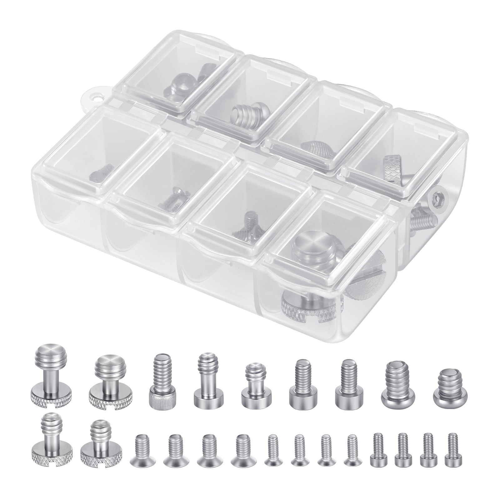 - Pratico set di viti per fotografia : i piccoli accessori per fotocamera, come le viti, vengono spesso smarriti. Ottieni questo set di viti per il montaggio della fotocamera e avrai sempre le viti di ricambio a portata di mano. Sei tipi di viti incluse: viti da 1/4", 3/8", M2, M2.5, M3 e M4