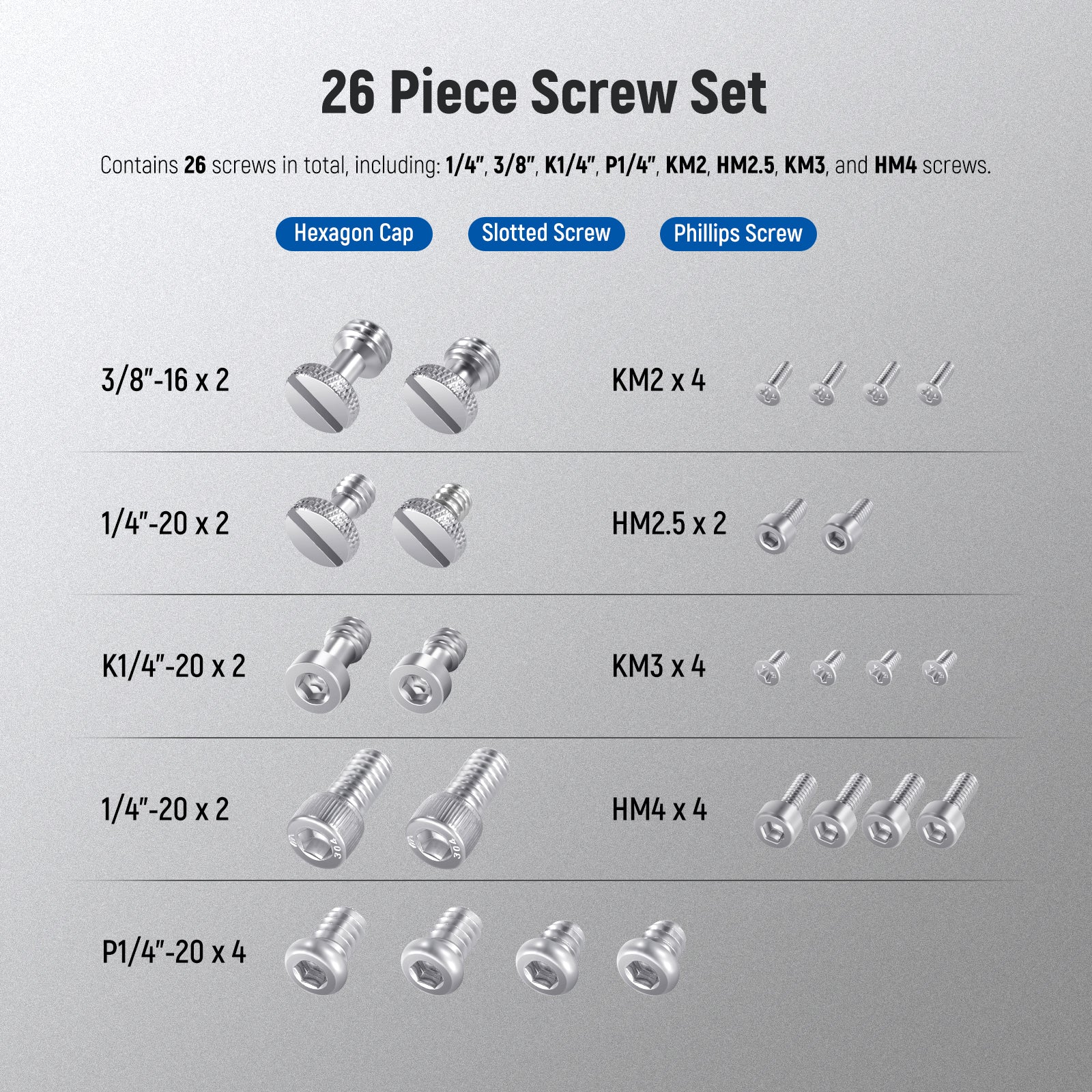 NEEWER UA002 Set di viti per fotocamera da 26 pezzi