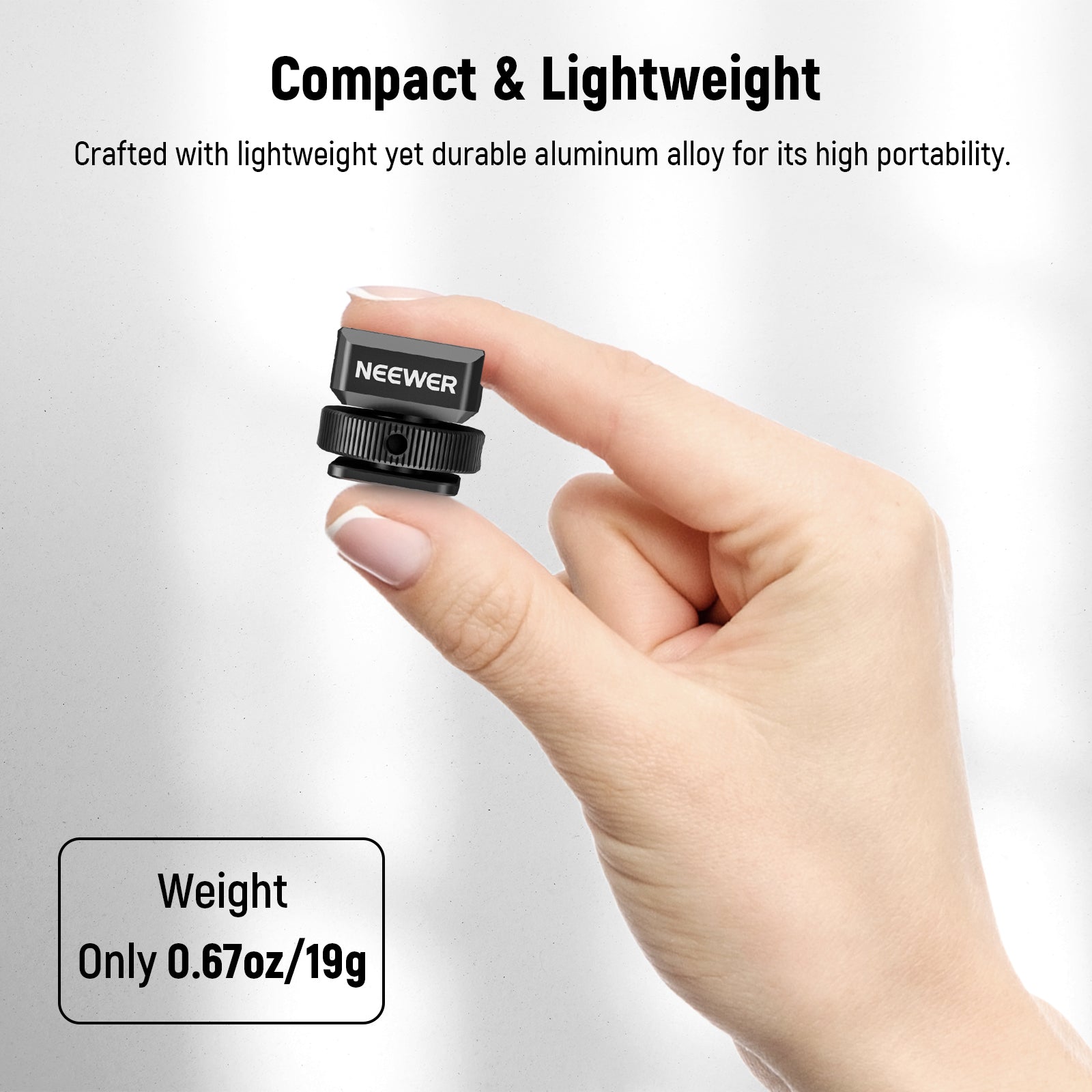 • Leggero e robusto : progettato in lega di alluminio anodizzato nero, questo adattatore è resistente ai graffi e alla ruggine. Misurando 25x24x21 mm/9,8"x9,4"x8,3" e pesando solo 19 g/0,67 once, è sufficientemente compatto e portatile per le riprese in movimento