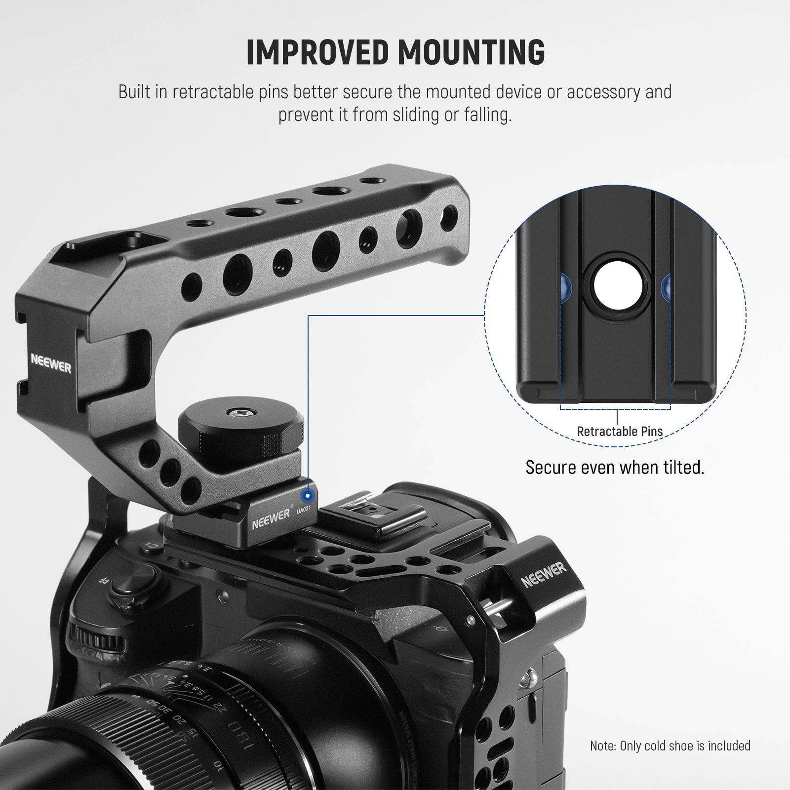 - Supporto standard per pattino freddo - Include 2 adattatori per montaggio per pattino freddo, 2 viti da 1/4" e 1 chiave esagonale a forma di L per espandere la tua attrezzatura fotografica. Basta stringere una qualsiasi delle viti da 1/4" nel foro filettato superiore e questo Il supporto per slitta fredda si collega a flash speedlite, microfoni wireless, monitor da campo e altri accessori per slitta calda e può essere fissato a gabbie o maniglie con una filettatura da 1/4"