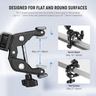 - Per superfici piane e aste tubolari : le scanalature a V e le punte del perno del supporto per telecamera da scrivania afferrano saldamente superfici piane (fino a 2"/50 mm di spessore) e oggetti cilindrici (fino a 1,6"/40 mm di diametro), come scrivanie, treppiedi, selfie stick, supporti per luci, supporti a spalla, manubri per bici/moto, pali, ecc. Compatibile anche con gli accessori per telecamera Smallrig Magic Arms Small Rig, compatibile con DJI Ronin-M Ronin MX compatibile con aste stabilizzatrici gimbal Freefly Movi da 25 mm e 30 mm