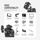 - Varie opzioni di montaggio : filettature da 1/4", fori di posizionamento per ARRI, 2 attacchi a slitta fredda sui super morsetti per action camera, telefoni, webcam, monitor, luci di riempimento a LED, microfoni e altri accessori per fotografia e videografia, compatibile con iPhone 16, 15 Pro Max Plus, 14 e 13, compatibile con Samsung Galaxy, compatibile con GoPro Max 360 Hero 13, Go Pro 12, 11, 10, 9 e 8 Black, compatibile con Insta360 X4, X3, Ace Pro, compatibile con DJI e compatibile con Mevo Start. Supporto per telefono e adattatore non inclusi.