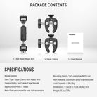 - Super morsetti con interfaccia NATO : i super morsetti sono dotati di un foro per vite da 1/4", fori di posizionamento e interfaccia NATO nella parte inferiore, che consentono di montare direttamente il braccio magico a doppia testa sferica incluso o di staccarli e inserirli in gabbie per telecamere, impianti video o maniglie con basi per morsetti NATO, offrendo infinite possibilità per la configurazione personalizzata.