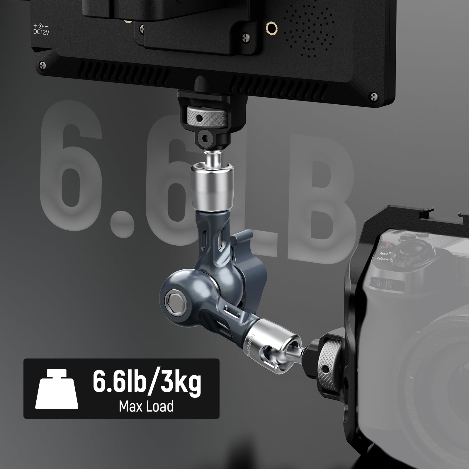 - Opzioni di montaggio da 1/4" - Le viti di montaggio da 1/4" sono adatte per il montaggio di fotocamere mirrorless DSLR, pannelli di luci video a LED, microfoni, monitor da campo (compatibili con Atomos Ninja V), supporti per smartphone, adattatori per action cam, ecc. In alternativa, è possibile collegare direttamente il braccio magico a gabbie per fotocamere, treppiedi o altri supporti utilizzando un super clamp (non incluso). Ideale come accessorio fotografico essenziale per i creatori di contenuti e gli influencer. Carico massimo 6,6 lb/3 kg.
