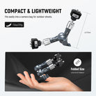 - Rotazione a 360° e inclinazione a 90° : il supporto per telecamera Magic Arm è dotato di una testa a sfera con una tacca a U su ciascun braccio articolato per una rotazione a 360° e un'inclinazione a 90° e può essere fissato a qualsiasi angolazione desiderata tramite la leva allargata, garantendo stabilità e posizionamento preciso.