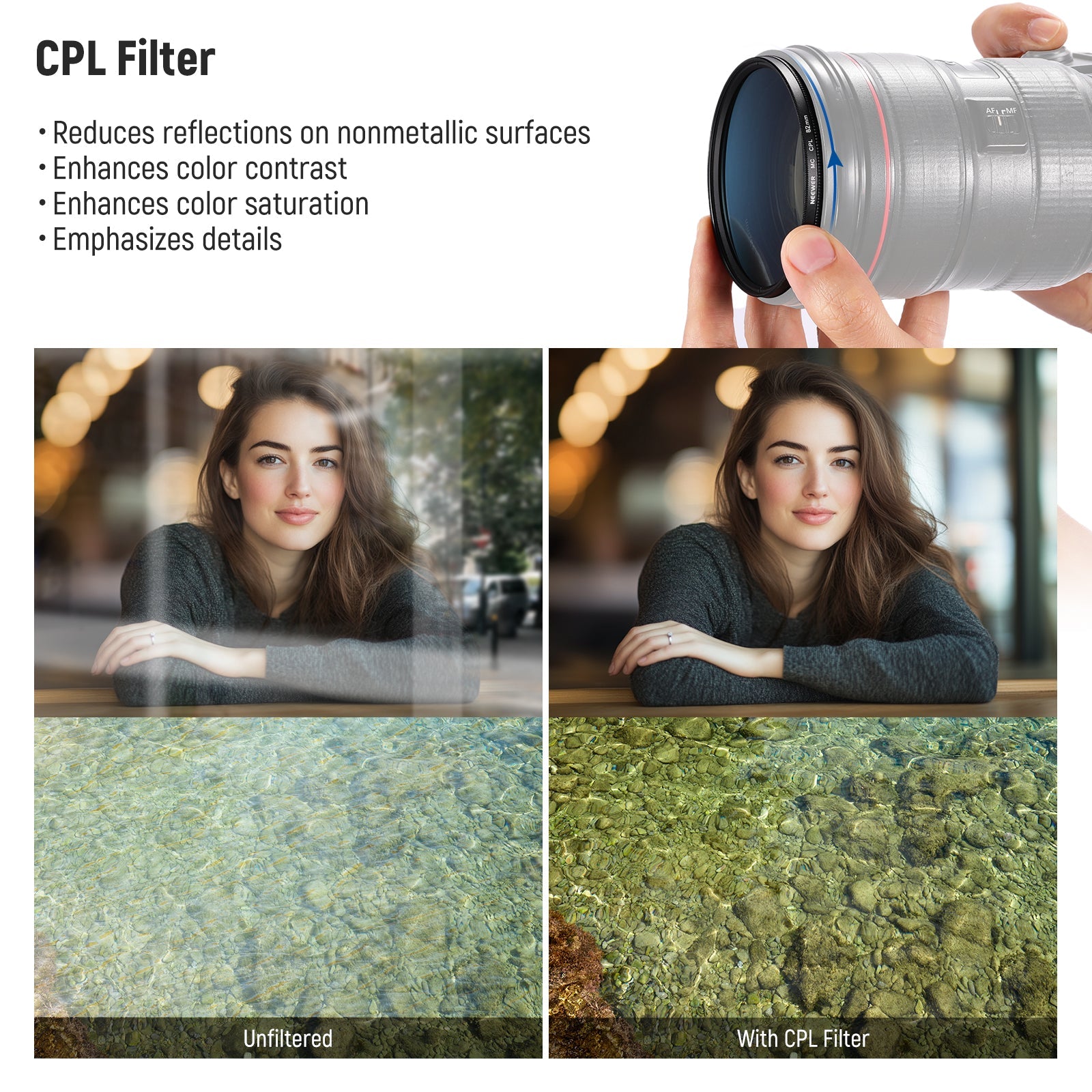 • Filter Types: UV/CPL/ND8