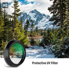 - Filtro UV protettivo : caratterizzato da una trasmissione della luce del 99,8%, il filtro UV protettivo è montato sull'obiettivo della fotocamera per bloccare i raggi ultravioletti e proteggere l'obiettivo da polvere, graffi e urti
