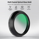 - Struttura in vetro ottico multistrato : il filtro stesso è realizzato in vetro ottico ad alta definizione per aiutarti a scattare immagini chiare senza perdere la nitidezza dell'immagine. I 30 strati di rivestimento Nano su entrambi i lati rendono il filtro idrorepellente, resistente ai graffi, resistente all'olio e alle impronte digitali