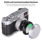 - Look elegante con alluminio anodizzato - Costruito con telaio in alluminio anodizzato, il filtro UV assume un aspetto elegante con finitura opaca. Disponibile in nero o argento, il filtro si abbina al colore della tua fotocamera X100 senza apparire invadente. Il leggero telaio in alluminio lo rende poco ingombrante e facile da trasportare
