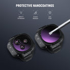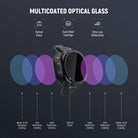 - Multicoated Optical Glass- Optical glass with multilayer, dual-sided coatings ensures clear footage while resisting water, fingerprints, and scratches. A cleaning cloth is included for daily care