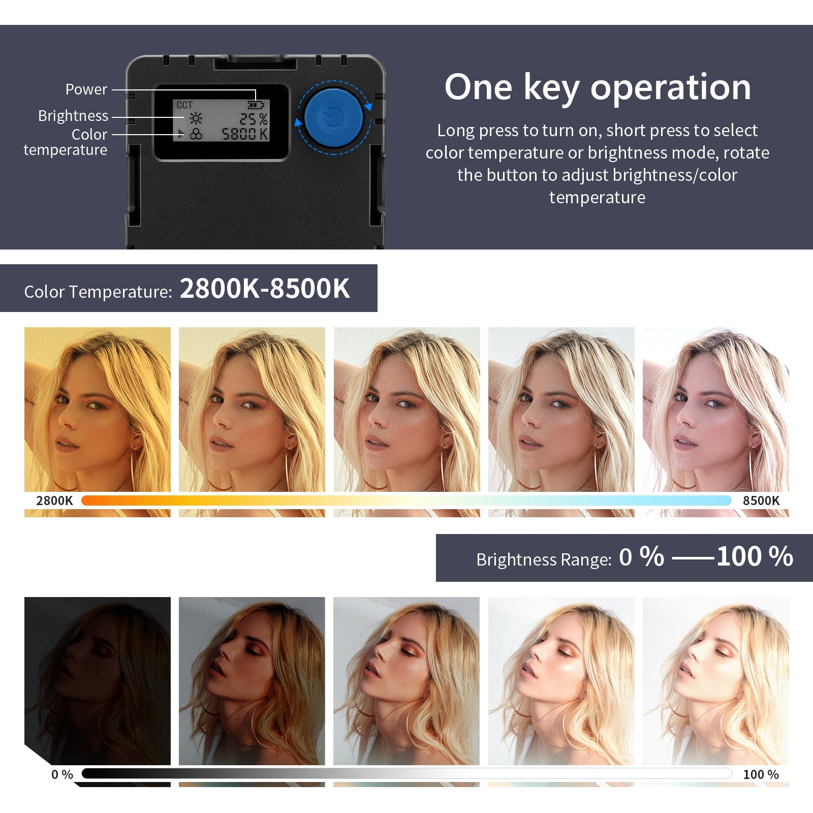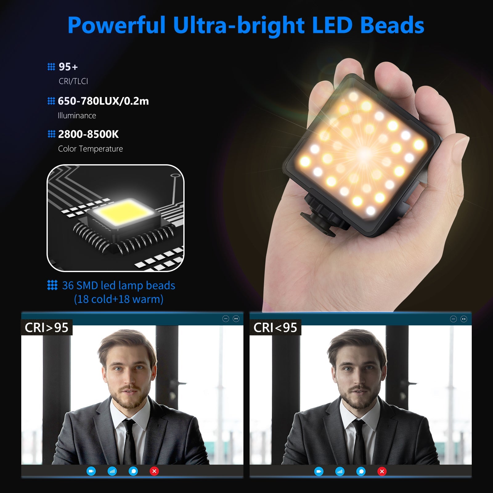 - Batteria al litio ricaricabile integrata da 2000 mAh con porta di ricarica di tipo C, la mini luce a LED ha un'autonomia fino a 2 ore di illuminazione continua a piena potenza. Temperatura di colore regolabile da 2800 a 8500 K, livelli di luminosità da 0 a 100% e un CRI elevato pari a 95+ faranno sì che il tuo viso appaia naturalmente valorizzato nel vlog.