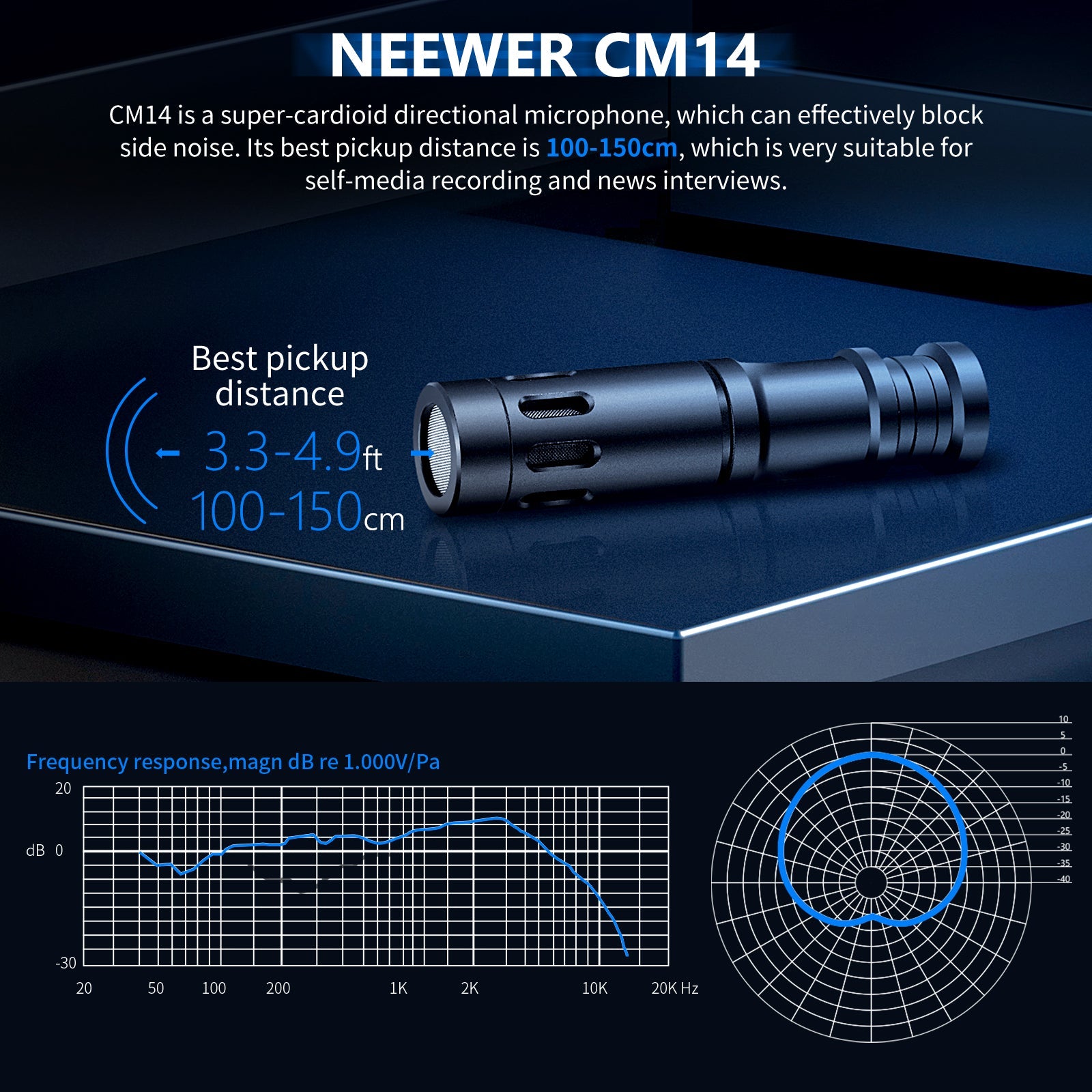 - Il microfono CM14 riproduce la tua voce in modo autentico, bloccando al contempo i rumori ambientali indesiderati. Il parabrezza in pelliccia può ridurre al minimo il rumore del vento quando si registra all'esterno, e la copertura in schiuma filtra efficacemente i colpi di respiro.