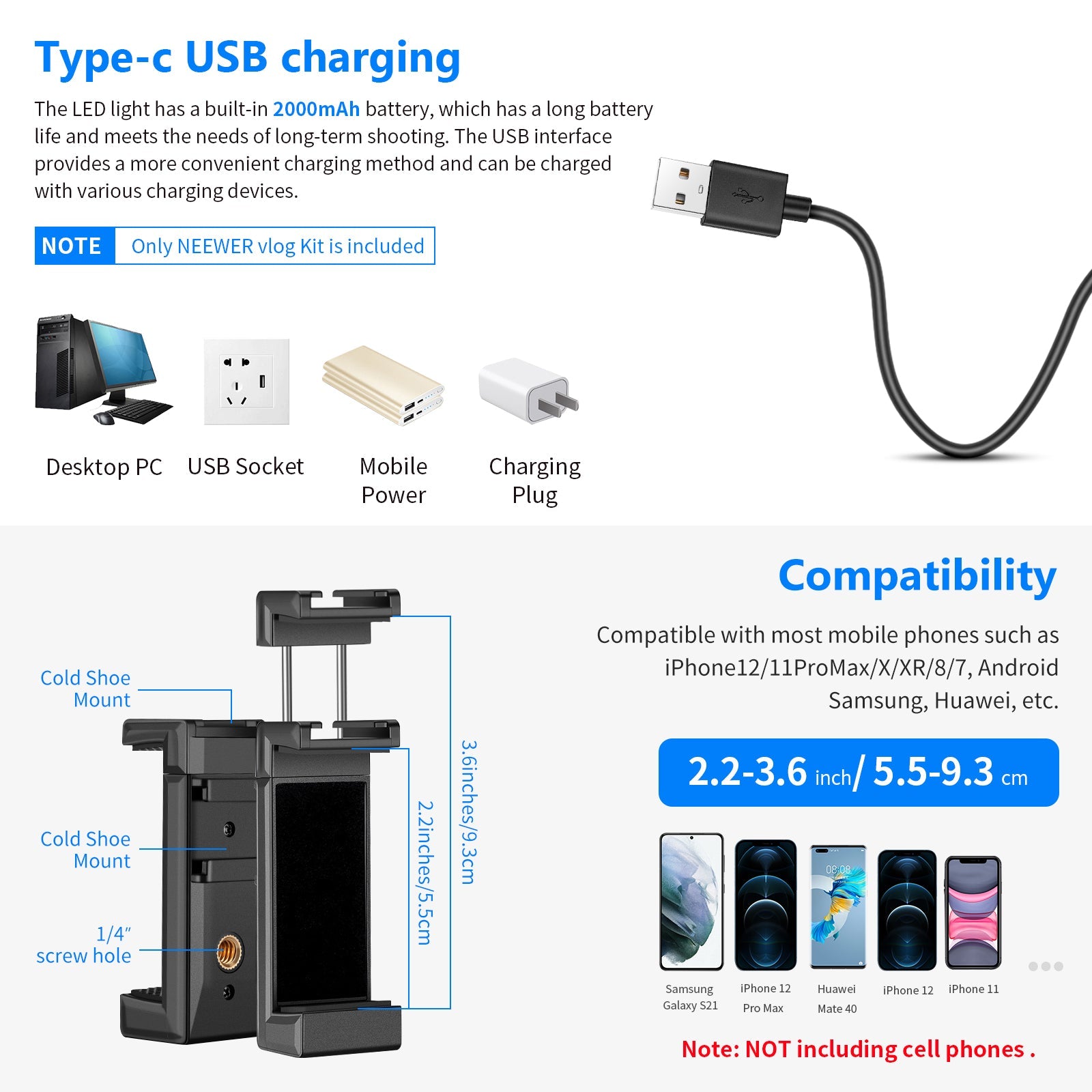 NEEWER CM14 Kit Vlogging per Smartphone per la registrazione video del telefono e della fotocamera