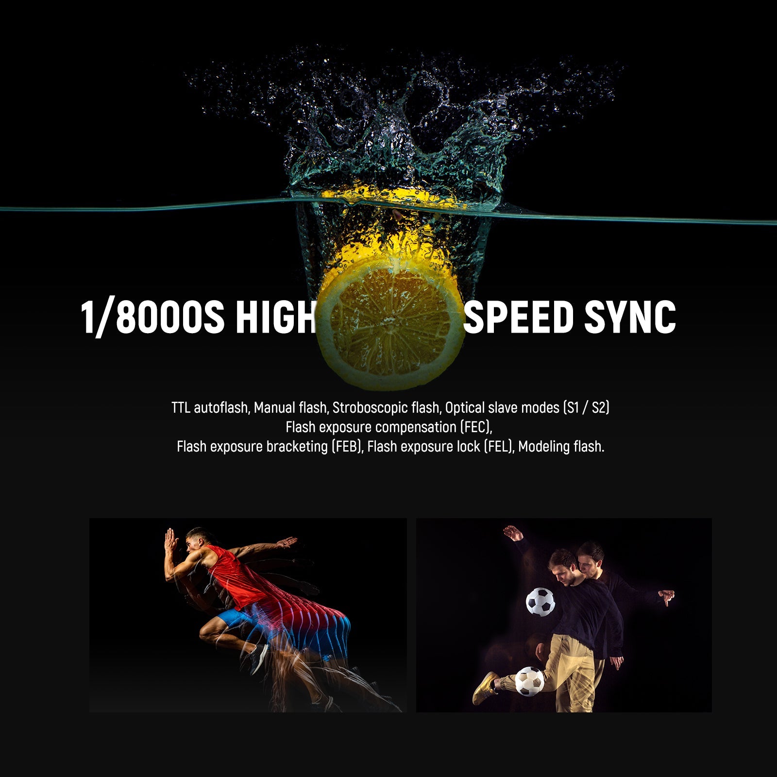 - sincronizzazione ad alta velocità (fino a 1/8000 s) per congelare il movimento.