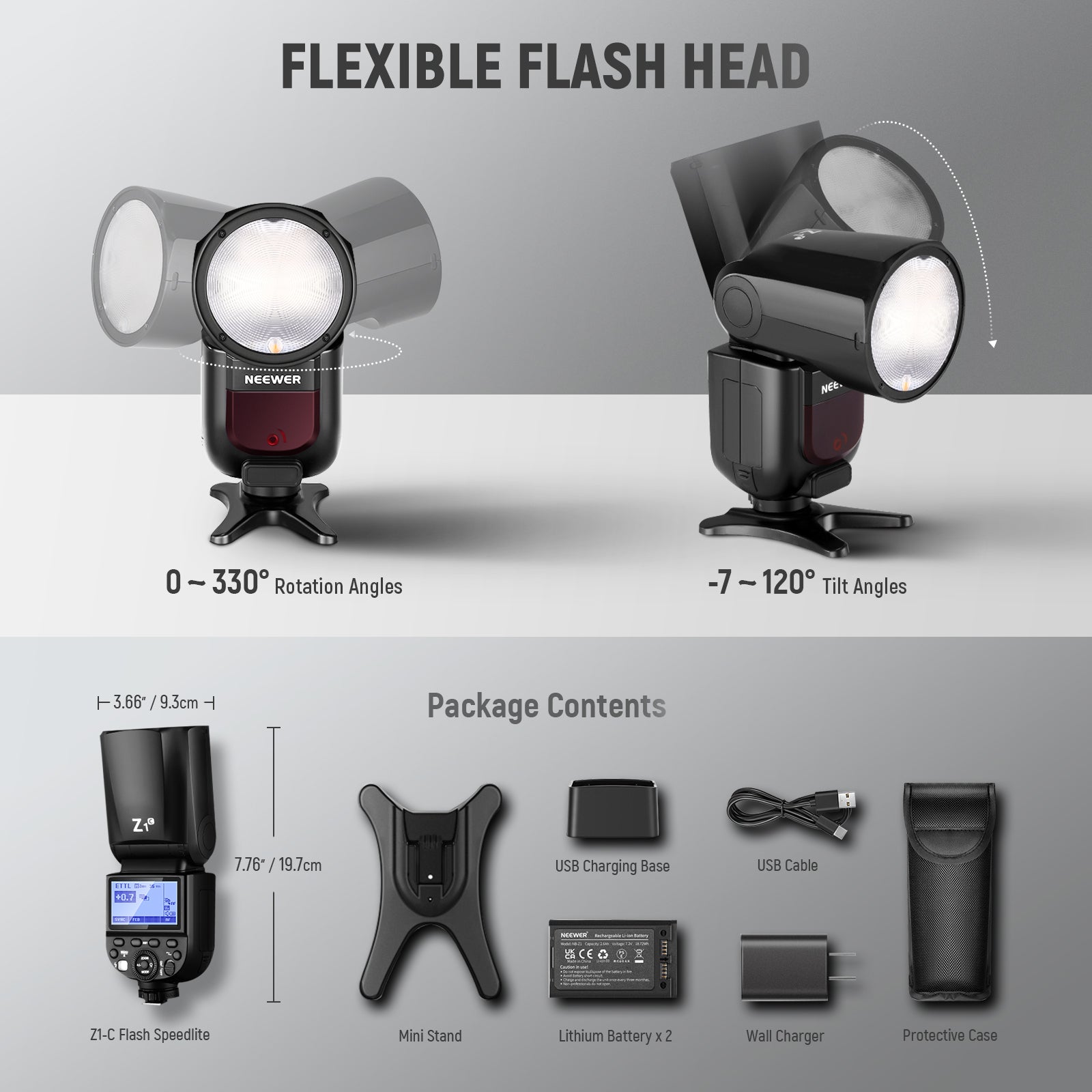 NEEWER Z1-C TTL Flash Speedlite a testa rotonda per Canon