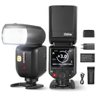 • Nuovo interruttore UI/TCM/Testa flessibile : lo schermo LCD HD e la nuova interfaccia utente semplificano l'utilizzo. Passa dalla modalità i-TTL a quella M con l'interruttore TCM per una misurazione precisa del flash. La potente lampada pilota a LED offre 10 livelli di oscuramento per un'anteprima precisa del flash. La testa del flash può inclinarsi da -7° a 120° e ruotare da 0° a 330° per un rimbalzo del flash flessibile.
