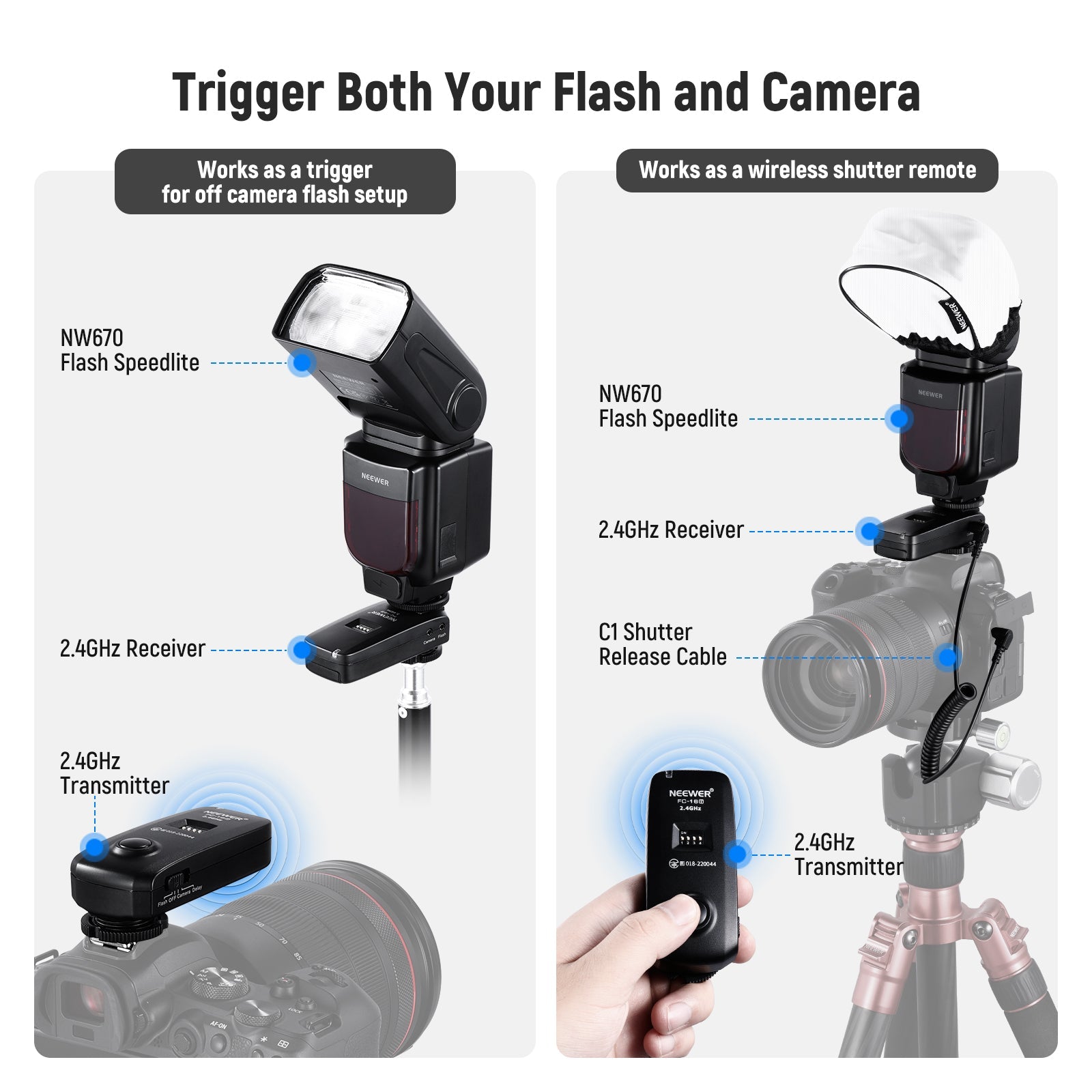 - 1 trigger flash per fotocamera wireless 3-IN-1 da 2,4 GHz e funzione di controllo remoto della fotocamera